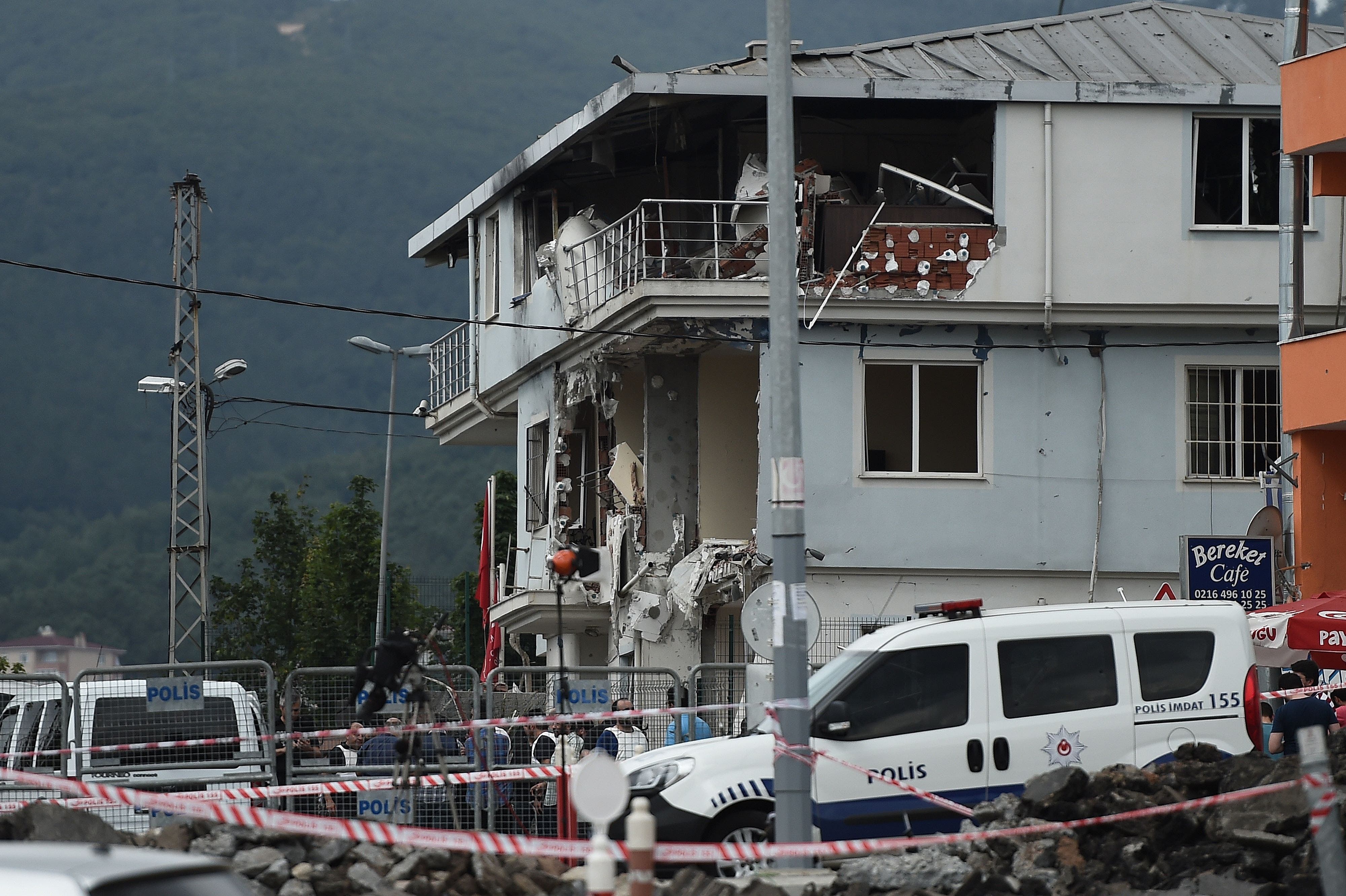 Several killed in wave of attacks across Turkey Attacks comes at a time of a sharp spike in violence between Turkish security forces and rebels of the Kurdistan Workers' Party, or PKK. (AP) By Agencies | Istanbul Monday, 10 August 2015 Two women were shot at the U.S. consulate in Istanbul on Monday and at least eight people were killed in a wave of separate attacks on Turkish security forces, weeks after Ankara launched a crackdown on ISIS, Kurdish and far-left militants. The NATO member has been in a heightened state of alert since starting its "synchronised war on terror" last month, including air strikes against Islamic State fighters in Syria and Kurdistan Workers Party (PKK) militants in northern Iraq. It has also rounded up hundreds of suspected militants at home. Police armed with automatic rifles cordoned off streets around the U.S. consulate in the Sariyer district on the European side of Istanbul, following the gun attack there. Ahmet Akcay, a local resident who witnessed the attack, told Reuters that one of the women fired four or five rounds, aiming at security officials and consulate officers. "Police were shouting 'drop your bag, drop your bag'. And the woman was saying: 'I will not surrender'," Akcay said. Terror group The attack was claimed by a Turkish far-leftist group known as The Revolutionary People's Liberation Army-Front (DHKP-C), according to Reuters news agency. The group said in a statement on its website that the United States was an “enemy of the peoples of the Middle East”. The Revolutionary People's Liberation Army-Front is listed as a terrorist organization by the United States and Turkey. It has claimed responsibility for similar attacks in the past, including a suicide bombing at the U.S. embassy in Ankara in 2013 which killed a Turkish security guard. A police car stands outside the destroyed police station in the Sultanbeyli district in Istanbul (AFP) Earlier, the attack targeting the police station in Istanbul's Sultanbeyli neighborhood and caused a fire that collapsed part of the three-story building, according to Anadolu news agency. The explosion also damaged neighboring buildings and around 20 cars parked nearby, the private Dogan news agency reported. An official said the outlawed Kurdistan Workers' Party (PKK) was behind a suicide attack that resulted in clashes that left three militants and one top police official dead. Increasing violence On the other side of Istanbul, a vehicle laden with explosives was used in an attack on a police station, injuring three police officers and seven civilians, police said. One of the attackers was killed during the bombing, while two others and a police officer died in a subsequent firefight, the Istanbul governor's office said. Broadcaster CNN Turk said the officer was a senior member of the bomb squad who had been sent to investigate the attack. There was no immediate claim of responsibility for either of the attacks, but U.S. diplomatic missions and police stations have been targeted by far-left groups in Turkey in the past. Turkish police officers run for cover during a gunfight near the site of an overnight explosion at a police station in Istanbul's Sultanbeyli neighborhood (AP) The attacks also come at a time when Turkey is taking a more active role against militants from the Islamic State of Iraq and Syria (ISIS). Last month it conducted aerial strikes against ISIS positions in Syria and agreed to let the U.S.-led coalition use its bases for its fight against ISIS. The move followed a suicide bombing blamed on ISIS which killed 32 people and after militants fired at Turkish soldiers from across the border in Syria, killing one soldier. Police cordoned off the area but people gathered outside the police station shouted slogans against the PKK, Hurriyet newspaper reported. (With Reuters, AFP and the Associated Press) Last Update: Monday, 10 August 2015 KSA 17:25 - GMT 14:25 http://english.alarabiya.net/en/News/middle-east/2015/08/10/Bomb-targets-Istanbul-police-station-injures-seven.html
